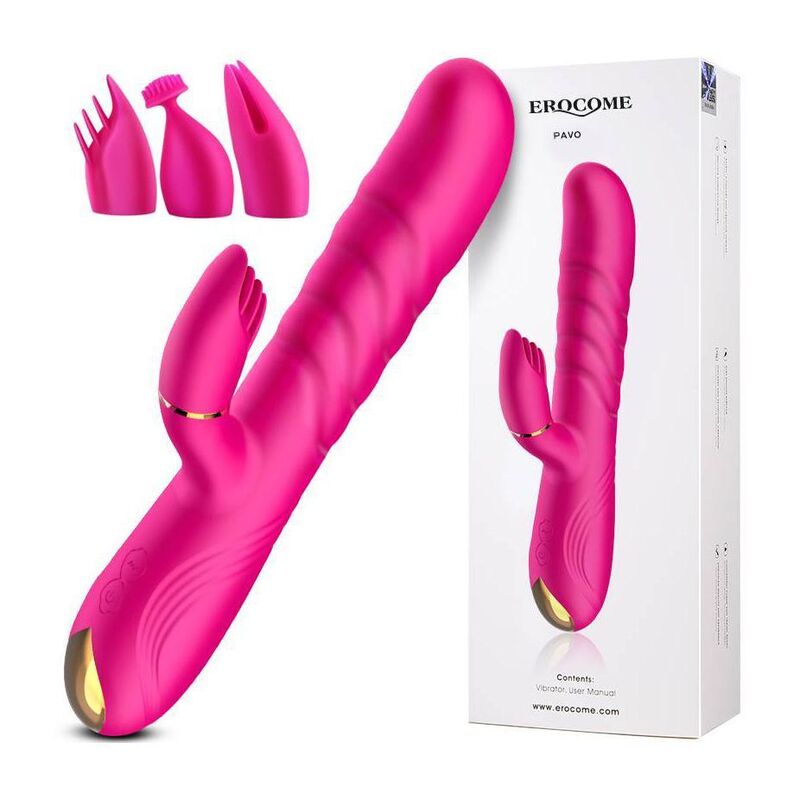 EROCOME Pavo 孔雀座多功能換頭式雙頭按摩棒,兼容 3 款刺激頭套,配合抽動式抽插功能,一棒多用,體驗幻想中的高潮快感!